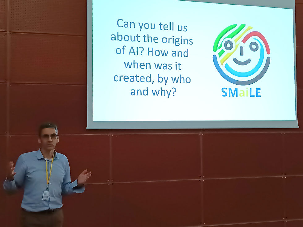 The remainder of the day focused on student workshops. One group explored AI in Daily Life, led by James Mac Eoin and Denise Clarke, examining how AI influences everyday activities and decision-making. The second group took part in Robots and Programming with AI, led by Marina Silva and Cátia Homem, where students were introduced to AI-driven robotics and basic programming concepts. After lunch, the groups swapped workshops, ensuring all students experienced both sessions.